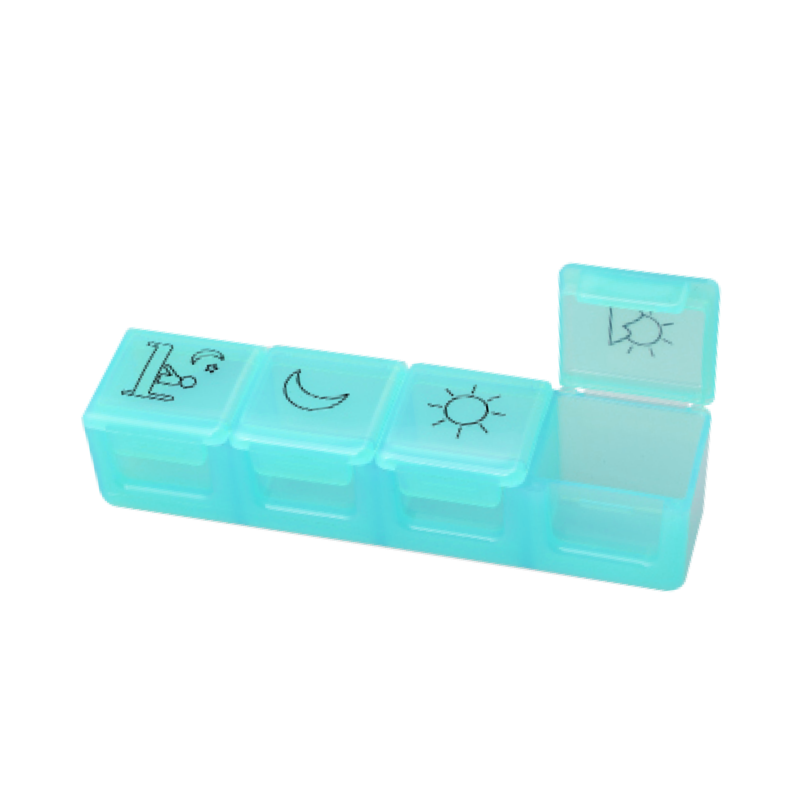 Model: SB008. A streamlined pill box that keeps small quantities of medicine organized and easy to access throughout the day.