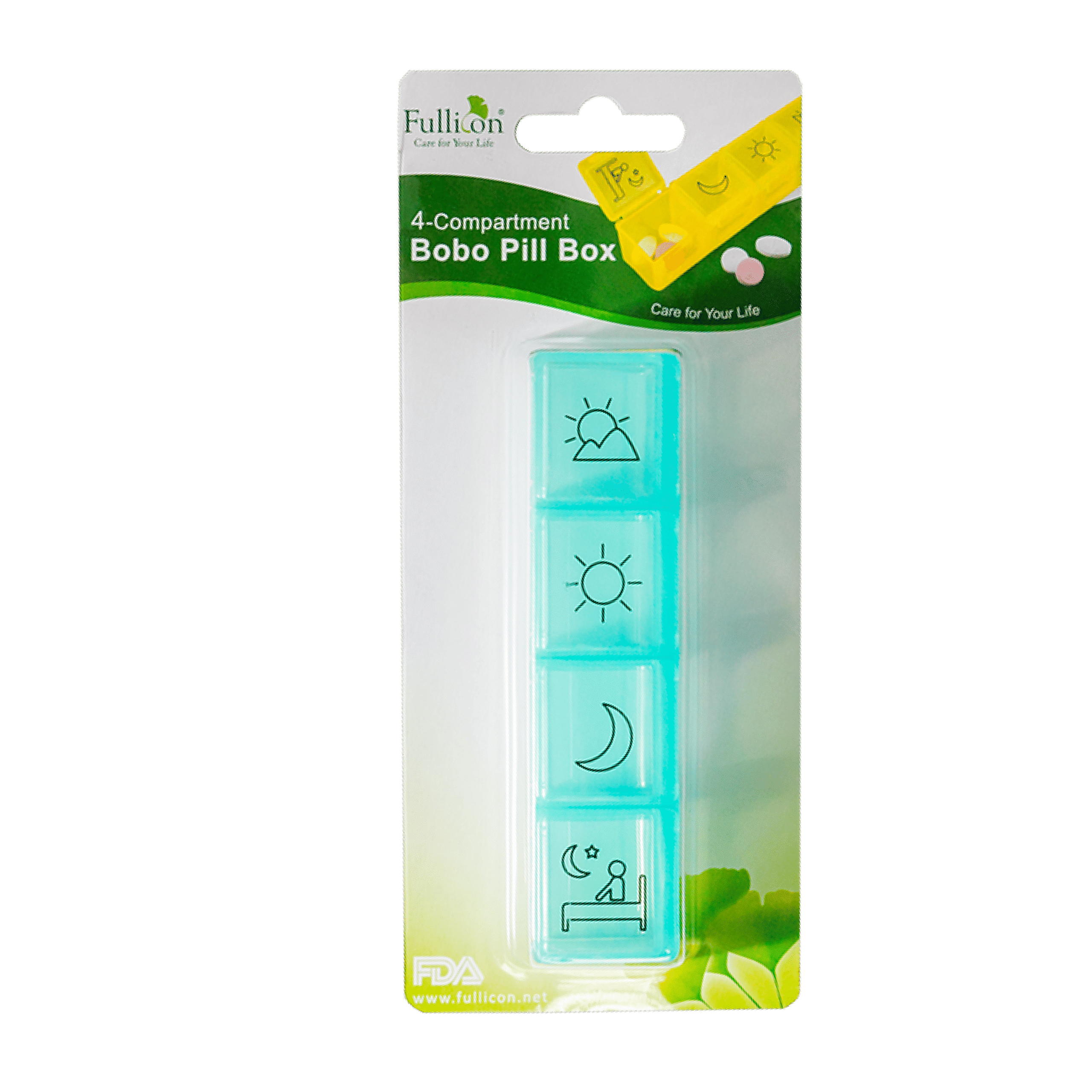 Simple, portable pill box for everyday use at home or on the go.